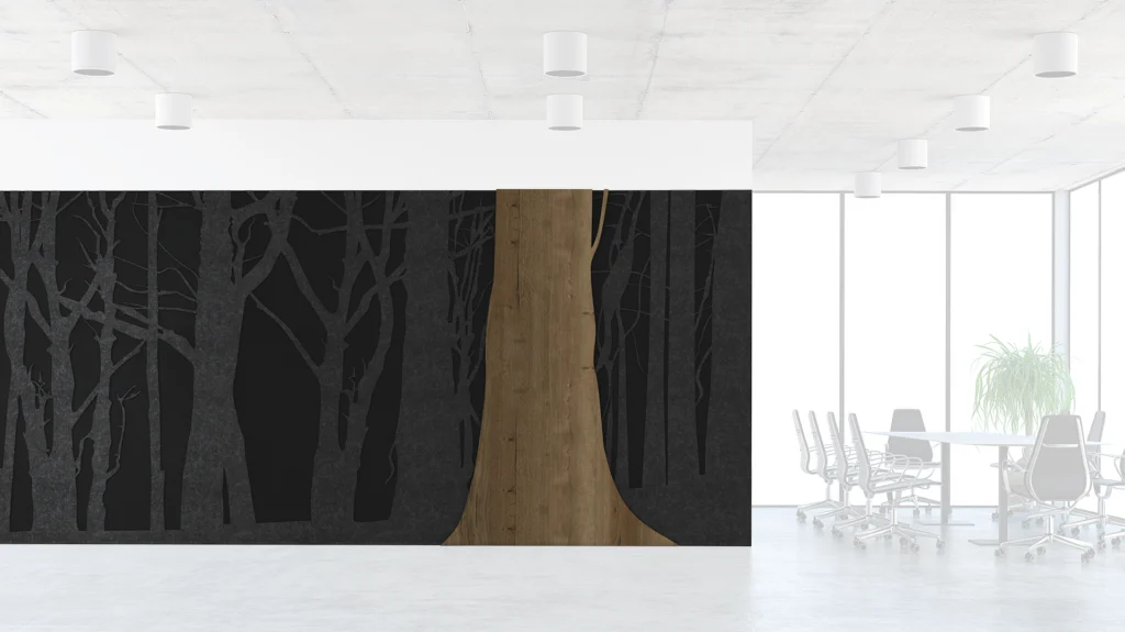 3D PETFelt paneel uit te voeren in 88 kleuren Met een geweldige akoestiek – AW-waarde 1,2.