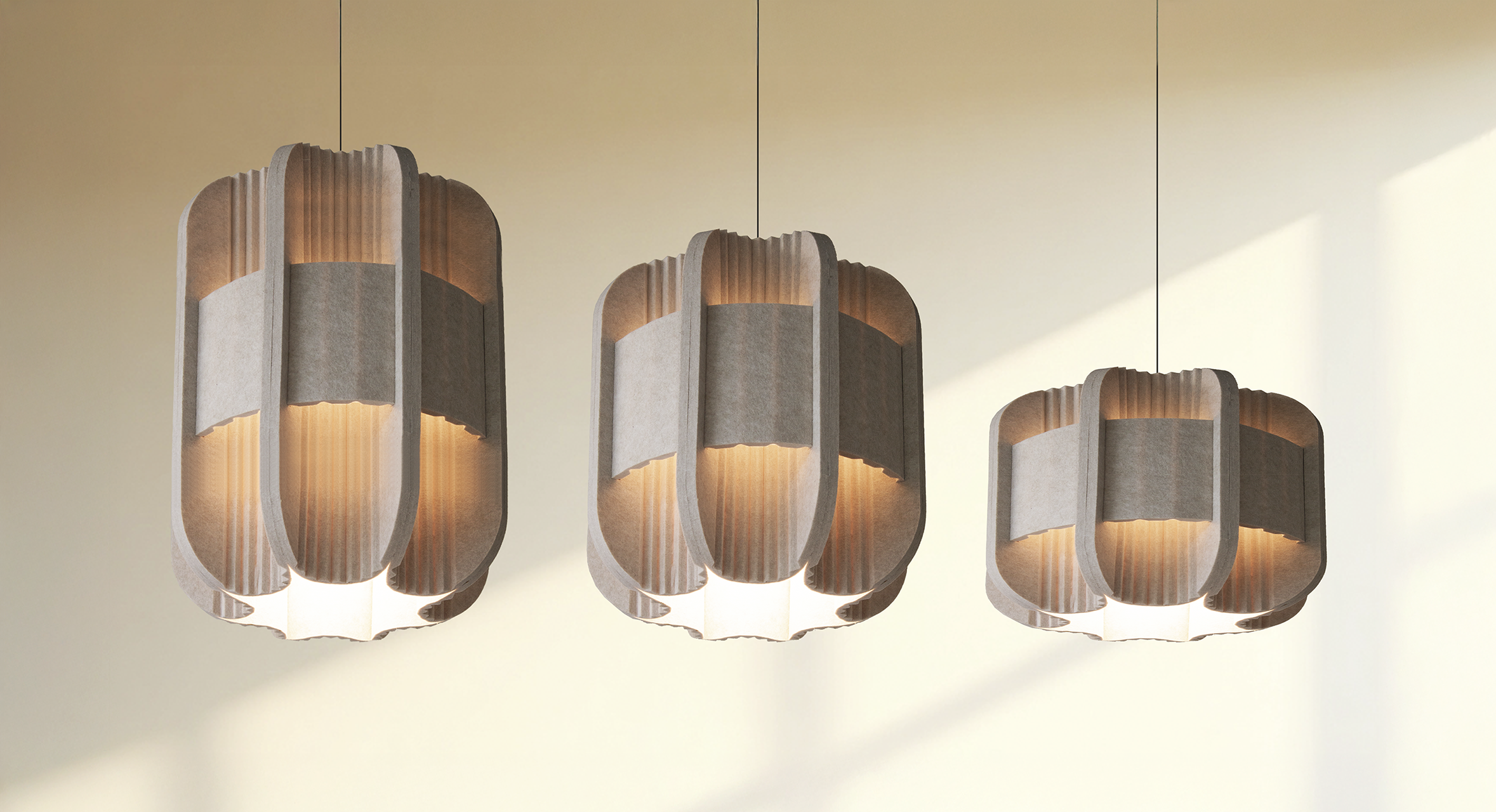 Deze akoestische lamp hebben wij in 3 versies ontwikkeld. Zo kan de Mespilia bij elk interieurontwerp goed gecombineerd worden.